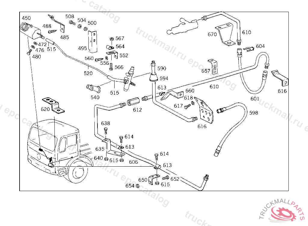 BRACKET CABLE GUIDE TO BEARING BRACKET, ON 385.068,069 ONLY ON VEHICLES WITH MERCEDES-BENZ CAB