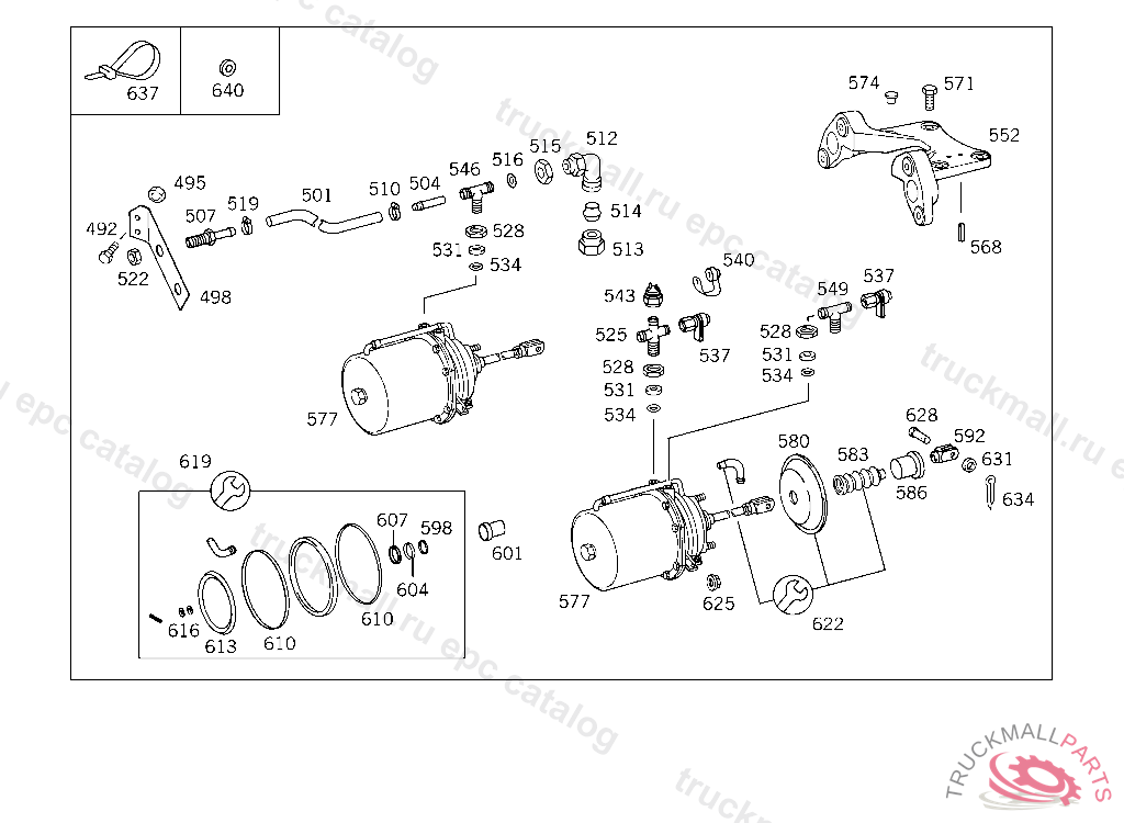 REPAIR KIT DIAPHRAGM CYLINDER TO 006 420 05 18, FROM AXLE 213195,UP TO AXLE 213194 SEE SPARE PARTS LIST 740.104