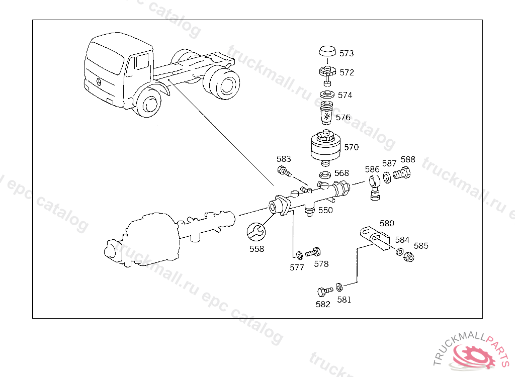 F-FITTING BRAKE PRESSURE REGULATOR CONNECTION, 620.415 UP TO CHASSIS 5 014668 620.416 UP TO CHASSIS 5 000515 620.417 UP TO CHASSIS 4 972023