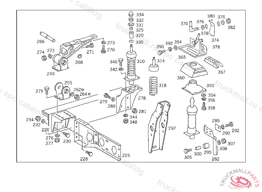 GUIDE CAB SUSPENSION,REAR RIGHT, 385.068,069 ON VEHICLES WITH DB CAB ONLY 385.019 FOR USE WITH SHORT MERCEDES-BENZ CAB5 204965