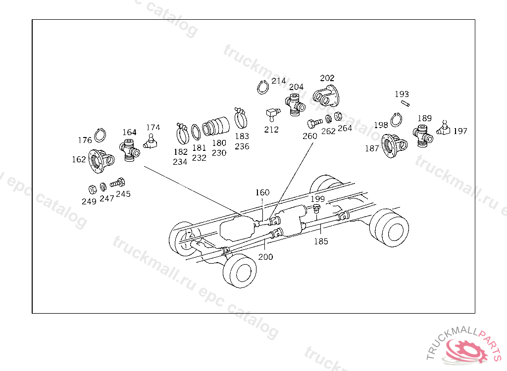 PROPELLER SHAFT FROM PROPELLER SHAFT BEARING TO REAR AXLE I 1250 MM, PART IS ONLY OR ALSO SUPPLIED AS RECONDITIONED PART