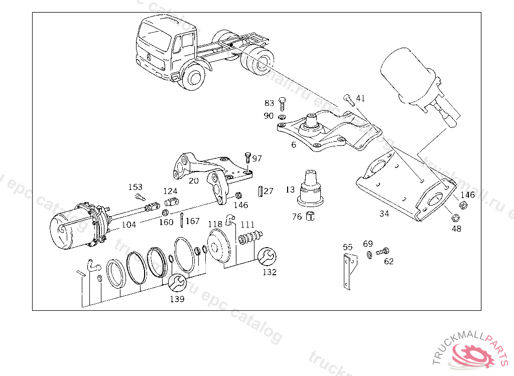 BEARING BRACKET COMBINATION CYLINDER, IN CASE OF STEEL AXLE, Replaced By: A3854204078