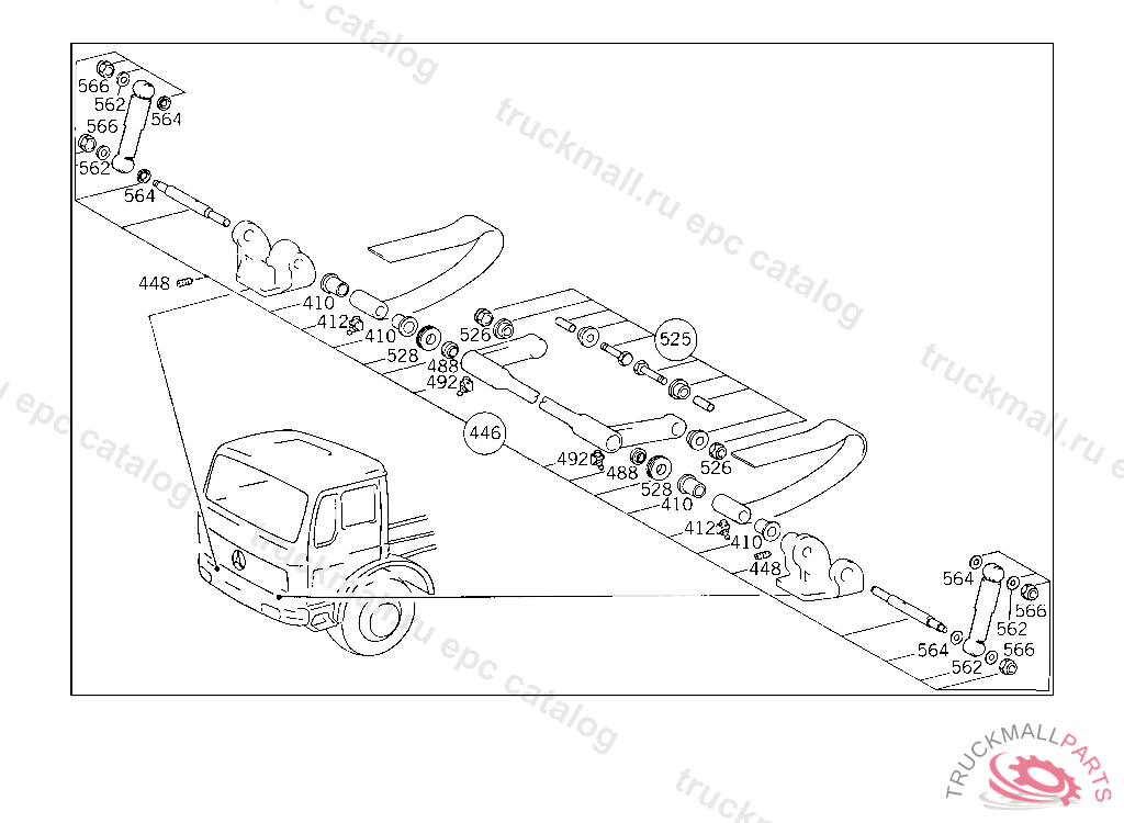 LOCKING MECHANISM CAB SUSPENSION,REAR RIGHT, 385.068,069 ON VEHICLES WITH DB CAB ONLY 385.019 FOR USE WITH SHORT MERCEDES-BENZ CAB5 204965