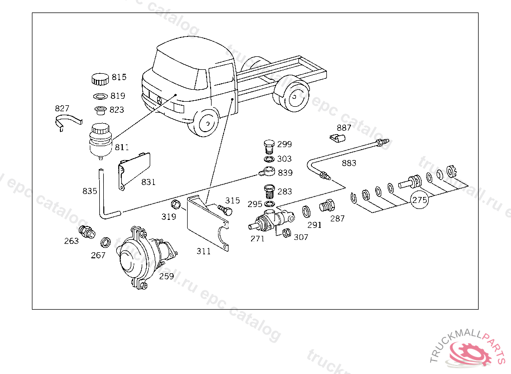 SUPPORT BRAKE BOOSTER ASSEMBLY, ON TRUCKS,L.H.D.UP TO CHASSIS 145736 ALSO INSTALLED ON 145741,145768,145770,145774,145786,145787,145795 145697,145701,145807,145808,145819,145825,145830,145837,145840,145846,145860,145861,145888,145901, 145907,145910,145911,145913-145917,146138. EXCEPT FOR 139841,139842,140553,145397,145406,145409,145426,145445,145462,145660. ON TRUCKS,R.H.D.UP TO CHASSIS 148036 WITH EXCEPTION OF 140555,142078 ON BUSES,L.H.D.UP TO CHASSIS 018153 ALSO INSTALLED ON 018155,018156,018159,018308,018310,018315,018317,018318,018327,018350,01 8355 WITH EXCEPTION OF 017661,017829, ON BUSES,R.H.D.UP TO CHASSIS 018729