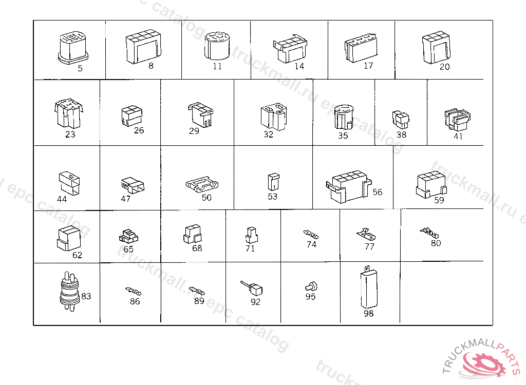 PIN BUSHING HOUSING. PLUG HOUSING FROM CHASSIS/CAB CONNECTION POINT TO TACHOGRAPH