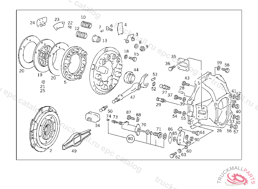 CLUTCH PRESSURE PLATE , UP TO IDENT NO. 941505 EXCEPT FOR 899081-941503 ONLY WITH OM601/OM602 ENGINE NOT WITH TWO-MASS FLYWHEEL