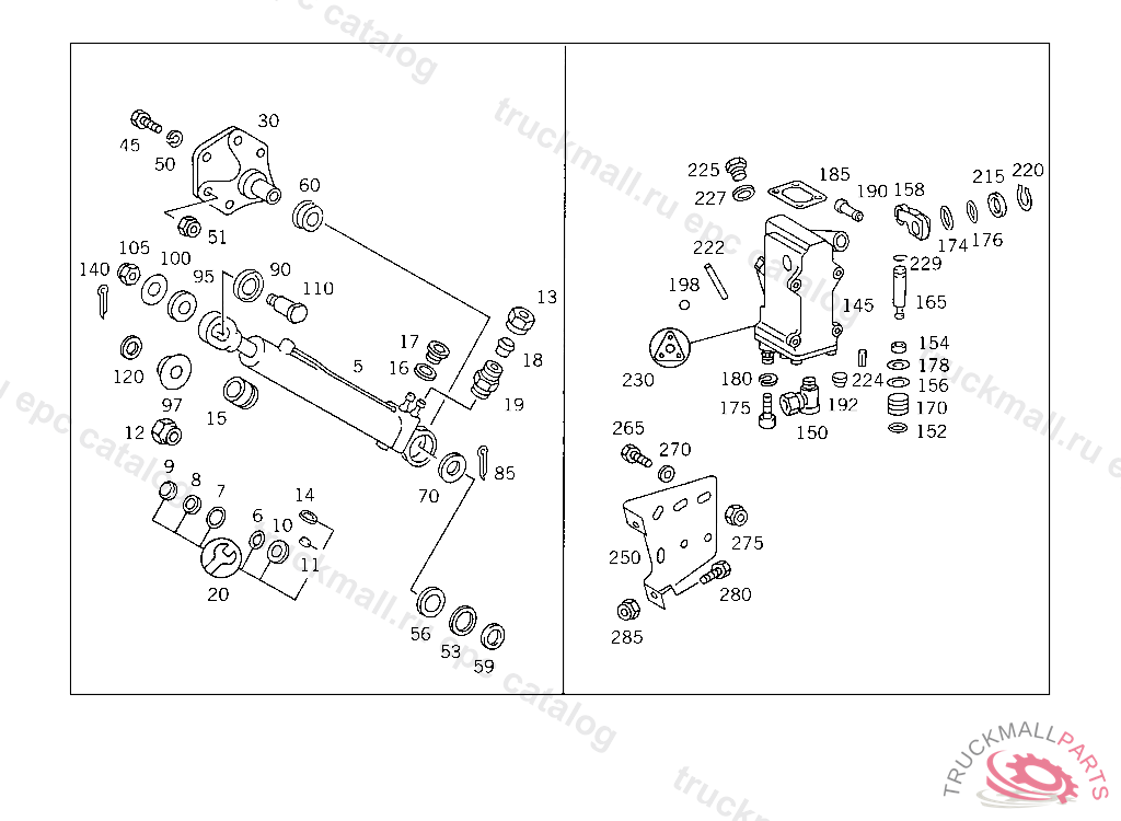 BEARING BRACKET HYDRAULIC CYLINDER, MODEL 415/416/417 FOR USE WITH SHORT CAB MERCEDES BENZ 415 5 014668 416 5 000515 417 4 972023