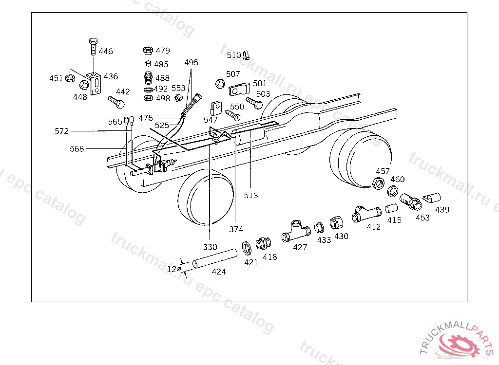 LINE FROM RESERVOIR HOSE TO BRAKE MASTER CYLINDER, ON TRUCKS,L.H.D.UP TO CHASSIS 145736 ALSO INSTALLED ON 145741,145768,145770,145774,145786,145787,145795 145697,145701,145807,145808,145819,145825,145830,145837,145840,145846,145860,145861,145888,145901, 145907,145910,145911,145913-145917,146138. EXCEPT FOR 139841,139842,140553,145397,145406,145409,145426,145445,145462,145660. ON TRUCKS,R.H.D.UP TO CHASSIS 148036 WITH EXCEPTION OF 140555,142078 ON BUSES,L.H.D.UP TO CHASSIS 018153 ALSO INSTALLED ON 018155,018156,018159,018308,018310,018315,018317,018318,018327,018350,01 8355 WITH EXCEPTION OF 017661,017829, ON BUSES,R.H.D.UP TO CHASSIS 018729