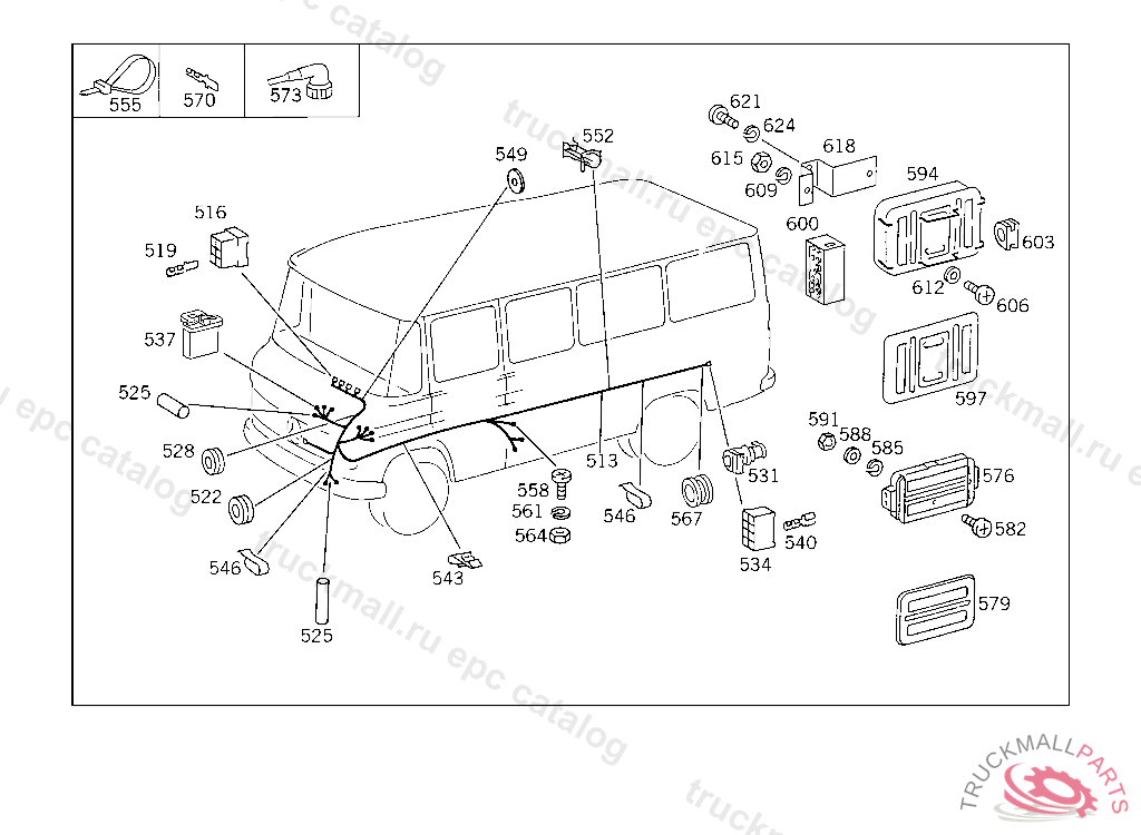 CABLE HARNESS FROM PLUG CONNECTION TO REAR CABLE CONNECTOR, FROM IDENT NO. 556500 ALSO INSTALLED ON 553795,555902,556120