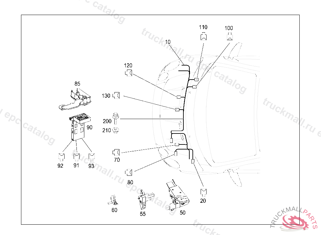WIRING HARNESS ENGINE CABLE HARNESS USED WITH AIR CONDITIONER WITH MANUAL TRANSMISSION, FIRST EXHAUST STOCK OF OLD PARTS UP TO IDENT NO. B 03275020040714, Replaced By: A4545409805