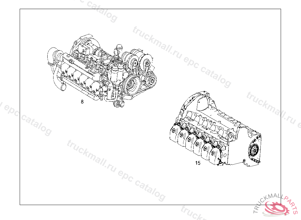 BASIC ENGINE PLEASE NOTE INFORMATION IN VEDOC, ORDER LONG BLOCK ENGINE STATING THE VEHICLE IDENT. NO. OR ENGINE NUMBER PART IS ONLY OR ALSO SUPPLIED AS RECONDITIONED PART