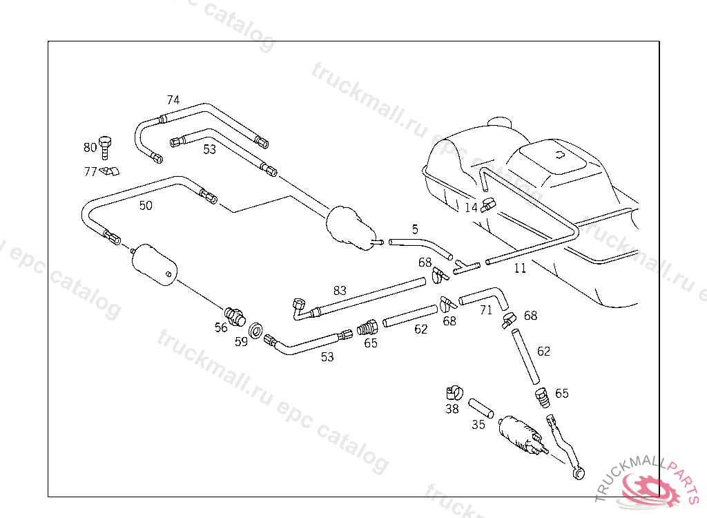 FUEL HOSE FROM FUEL FILTER TO FUEL ACCUMULATOR, 107.024 025530 107.044 053366 116.032,033 089514