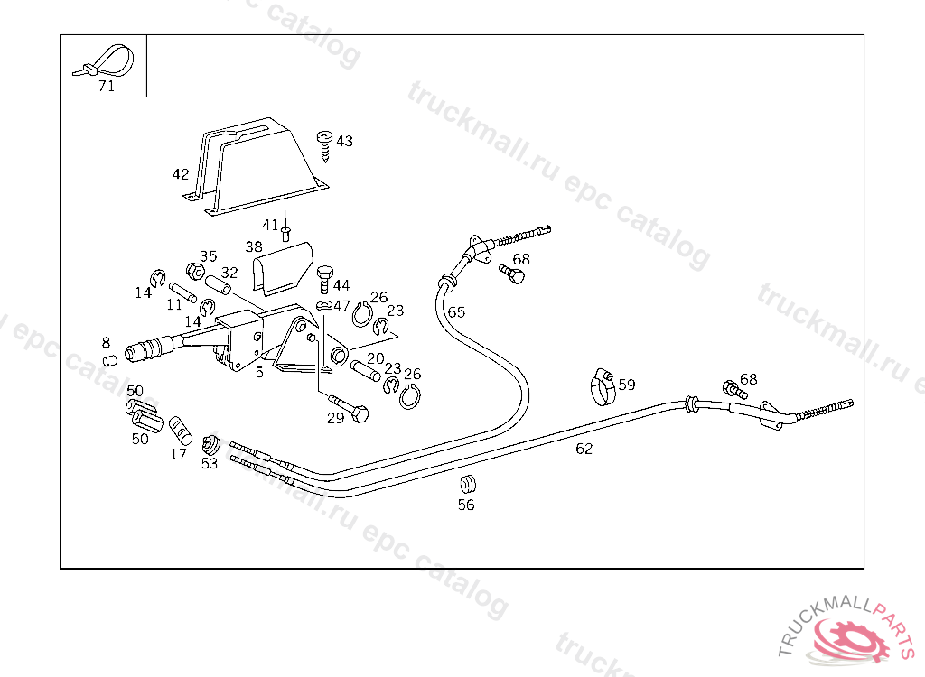 WIRE CABLE RIGHT, ON RIGHT BRAKE DB,1710 MM, FROM AXLE NO. K005108