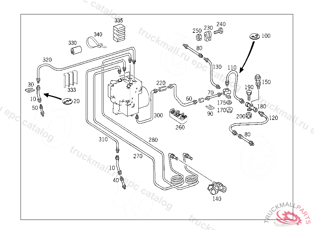 LINE FROM MASTER CYLINDER TO FRONT BRAKE PRESSURE REGULATOR,126.021 005796, 126.022,023 020032, 126.032,033 008371, 126.036,037 007212