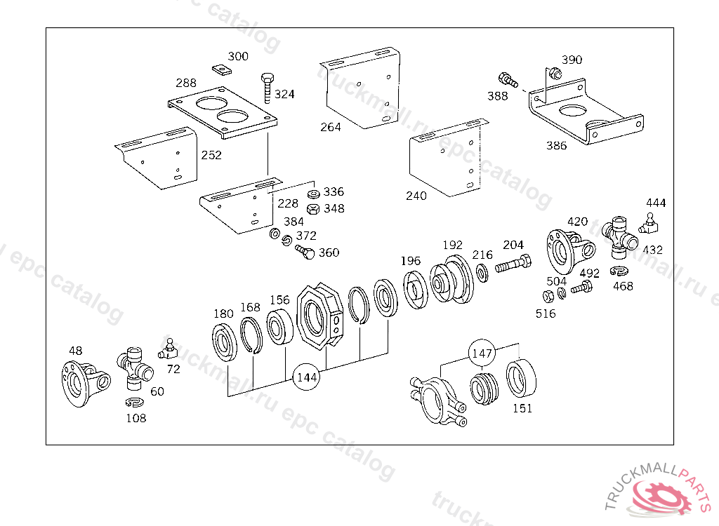 PROTECTIVE CAP FOLLOWER FLANGE, INTERMEDIATE BEARING, BALL BEARING IN RUBBER SEAT