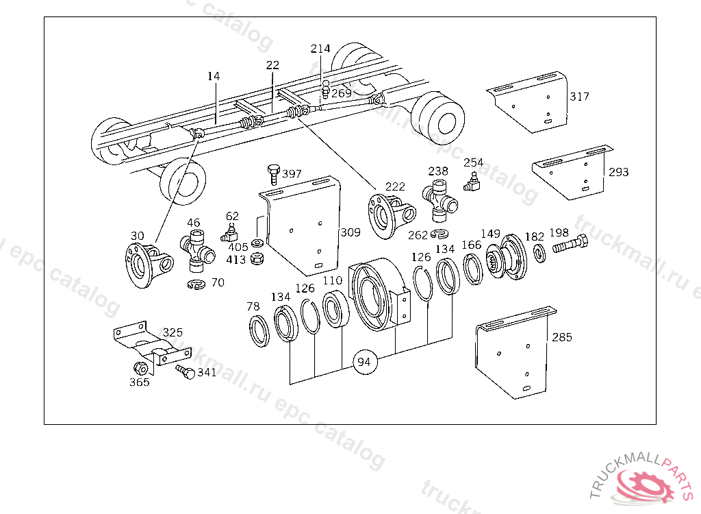PROPELLER SHAFT FROM PROPELLER SHAFT BEARING II TO REAR AXLE 1280 MM