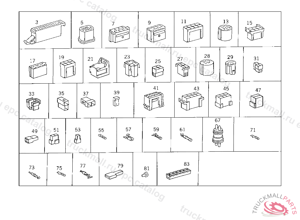 PIN BUSHING HOUSING. PLUG HOUSING FROM CHASSIS/CAB CONNECTION POINT TO TACHOGRAPH