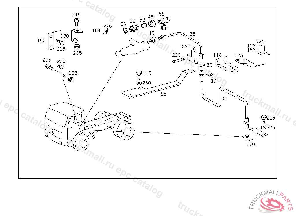 HOSE FROM BRACKET AT SIDE MEMBER TO CLUTCH SLAVE CYLINDER 350 MM, 024,026,027,028,121,122 5 095725 065,131,132 5 104253