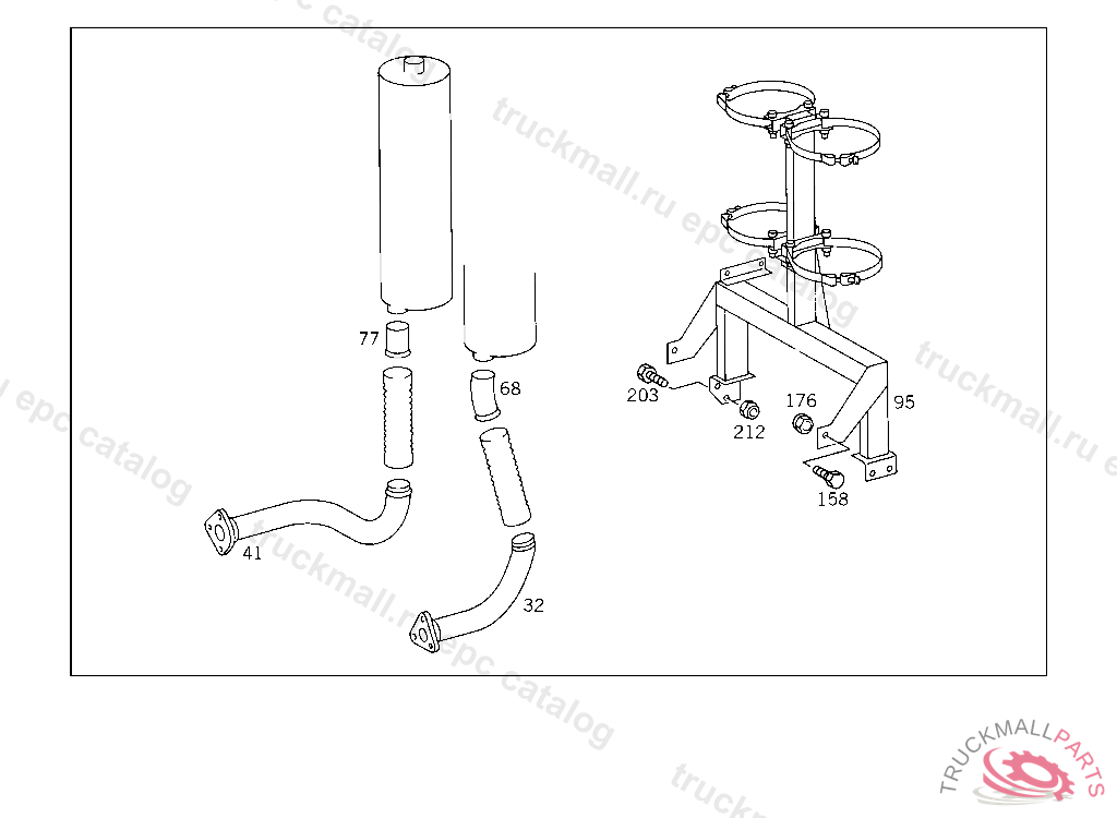 SCREW STRUT TO EXHAUST PIPE AND TO SIDE MEMBER