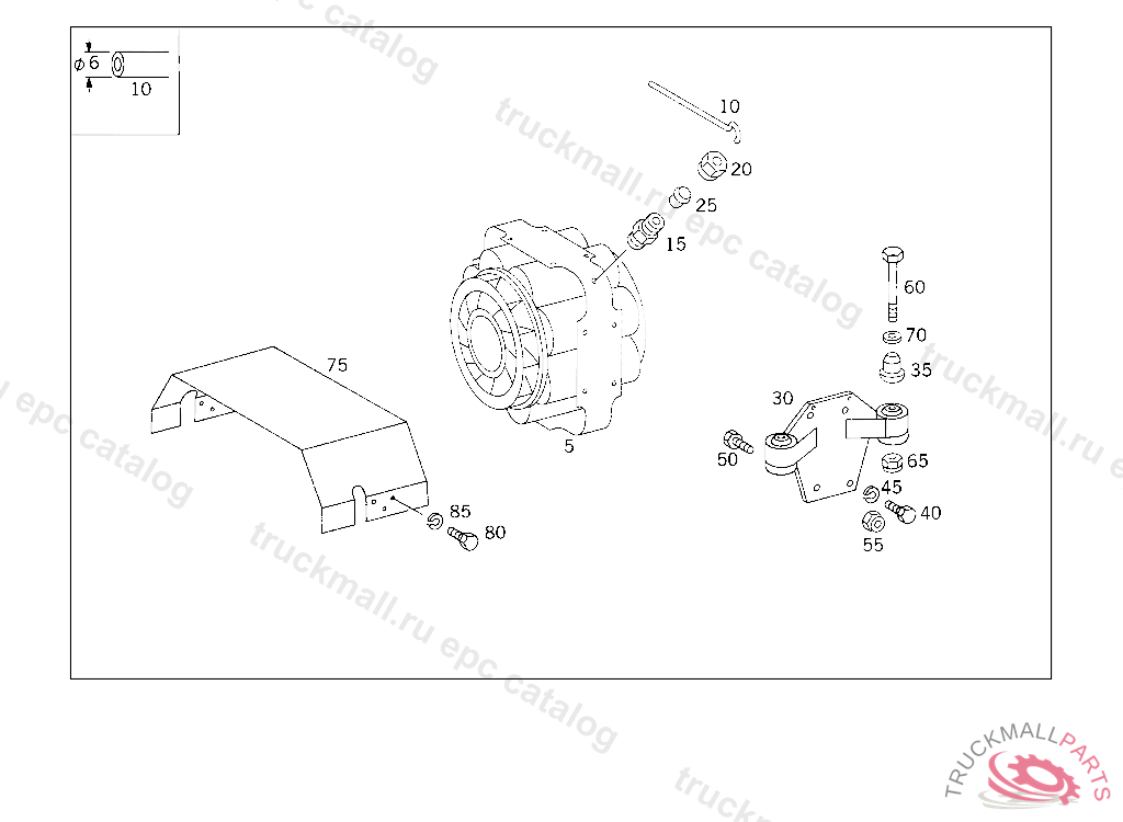 RUBBER MOUNTING TELMA BRAKE TO SUPPORT ON SIDE MEMBER