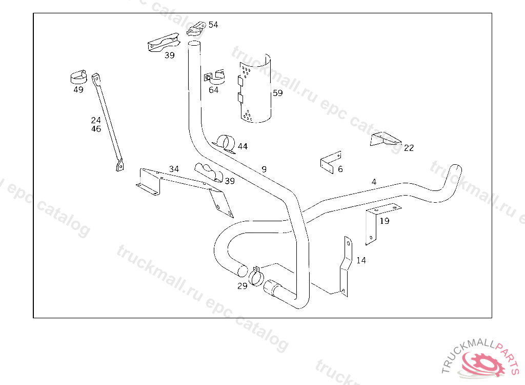 EXHAUST PIPE FROM EXHAUST MUFFLER TO CAB REAR PANEL