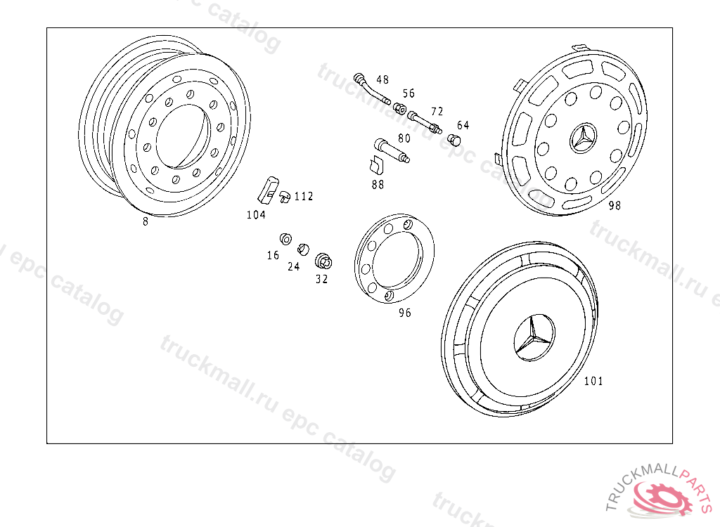 DISC WHEEL MID-CENTERING 7,5X22,5, I WHEN ORDERING, INDICATE IN ADDITION THE COLOR CODE NUMBERS: I BLACKISILVER I I I II NO.9040INO.9205I I I II I