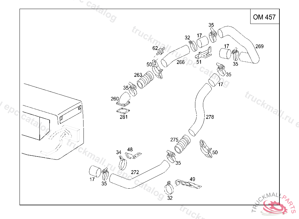 CHARGE AIR HOSE FROM CHARGING AIR INTERCOOLER TO ENGINE