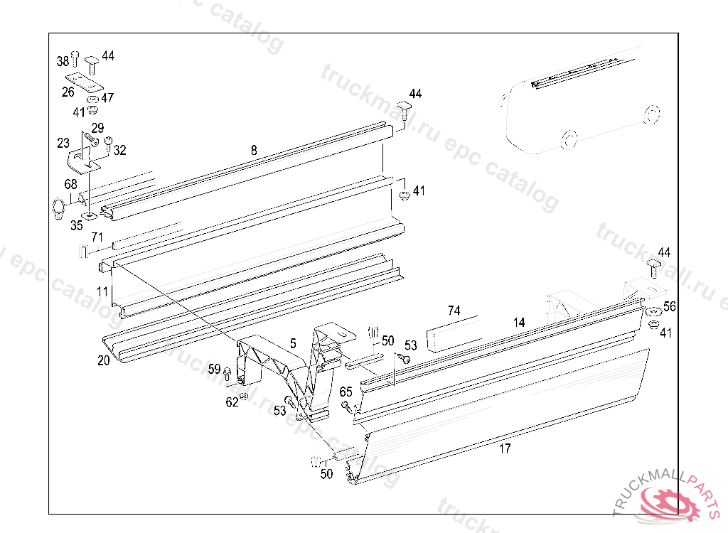 COVER RAIL TOP REAR RIGHT 5095MM,245581