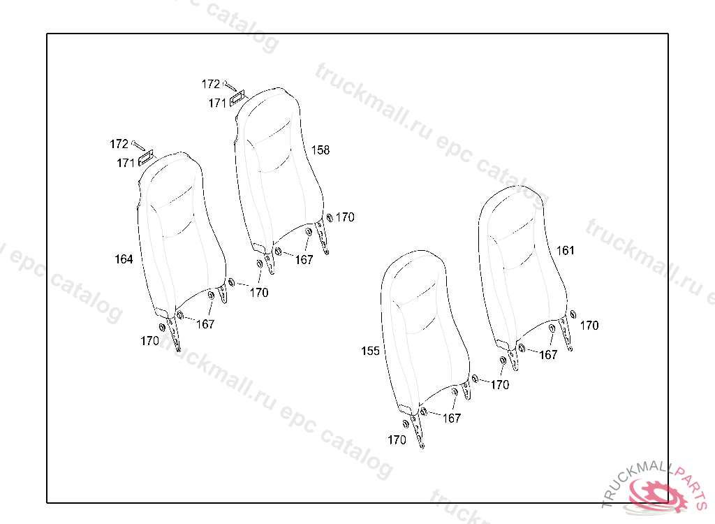 SEAT BACK REST LUXLINE FABRIC, RIGHT, WITH THIN PADDING