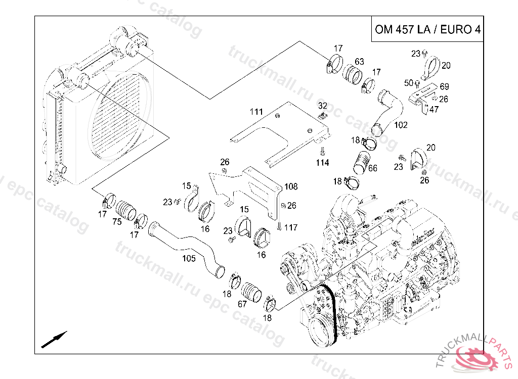 CHARGE AIR HOSE FROM CHARGING AIR INTERCOOLER TO ENGINE