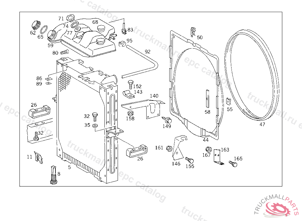 RADIATOR , FIRST EXHAUST STOCK OF OLD PARTS UP TO IDENT NO. 5 752618, Replaced By: A6525012501