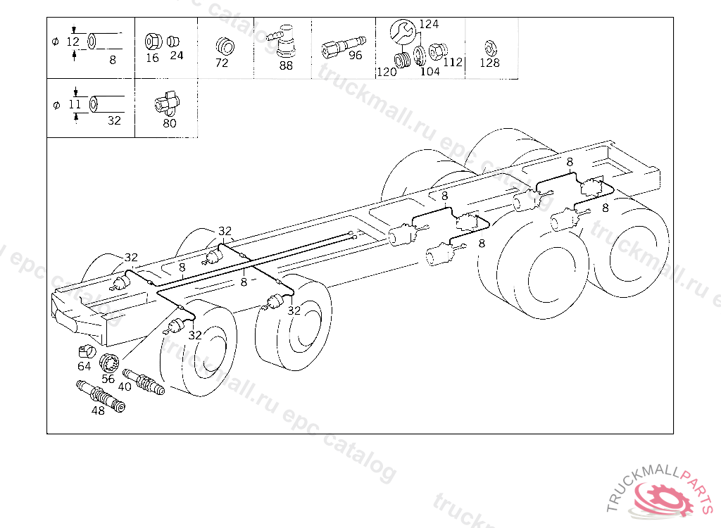 HOSE FRONT AND REAR AXLE BRAKE CYLINDERS 11 MM