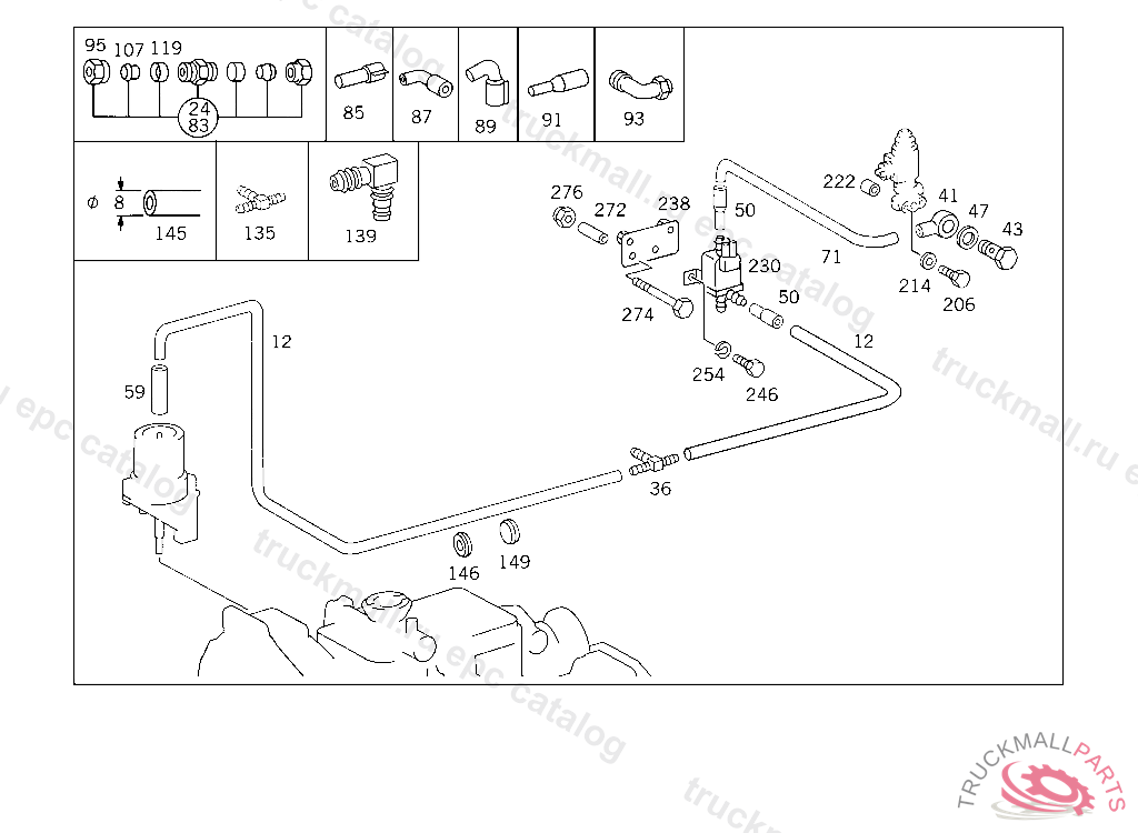 HOSE FROM 3/2-WAY VALVE TO POWER CYLINDER, N 000001 P 149402