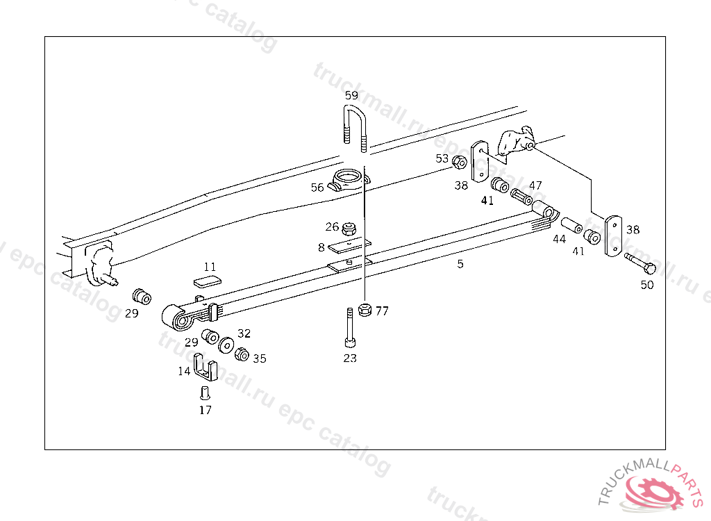 FRONT SPRING , USE U-BOLT + GUIDE PLATE AS REQUIRED, Replaced By: A6673203702, +001A6673204502, +002A6673220631, +002A6673220731, +004A6673514425, +004A6673516125
