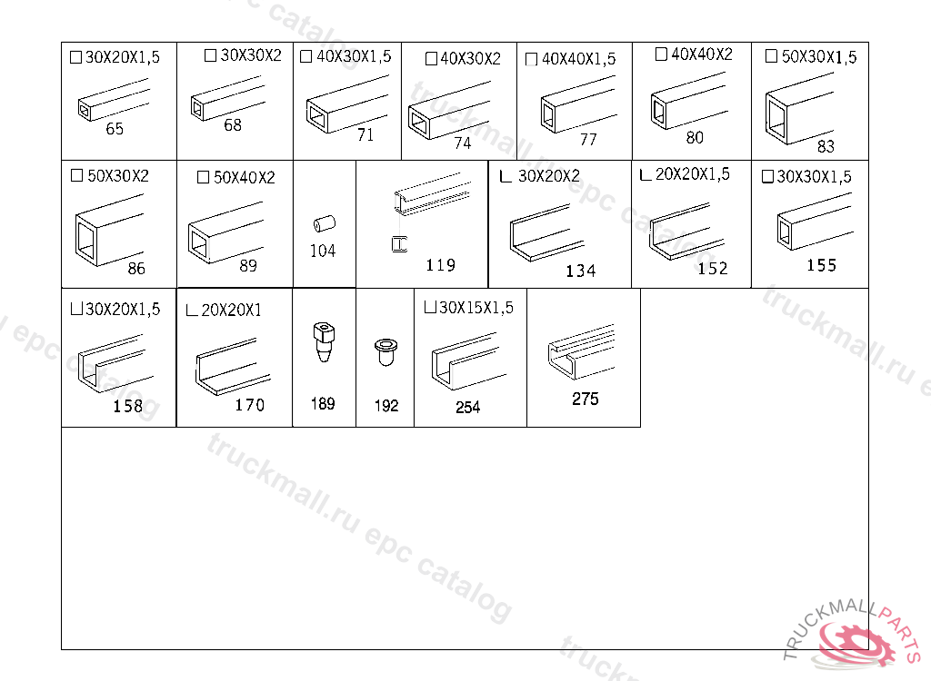 TUBE BEHIND REAR AXLE, TO BE ADAPTED DURING ASSEMBLY XB373 612 61 18 RECTANGULAR TUBE 40 X 40 X 2,0 X 2386 MM