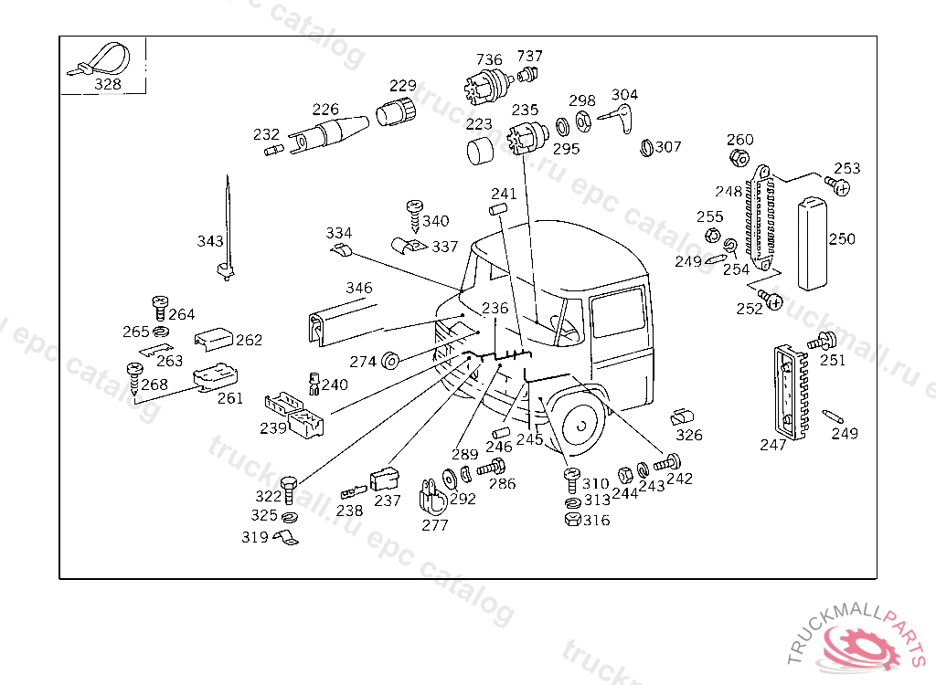 PIN BUSHING HOUSING. PLUG HOUSING FROM CHASSIS/CAB CONNECTION POINT TO TACHOGRAPH