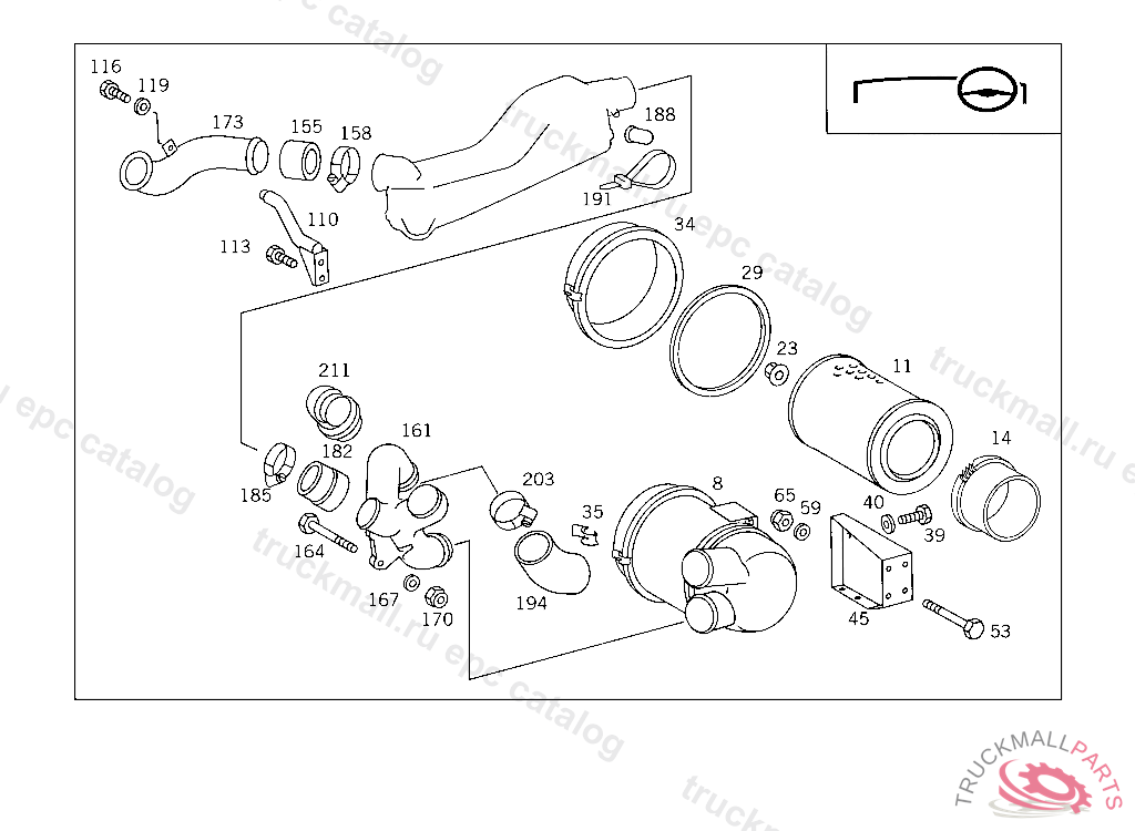HOSE CLAMP FROM AIR CLEANER TO TRANSVERSE INTAKE PIPE, Replaced By: A0019951910