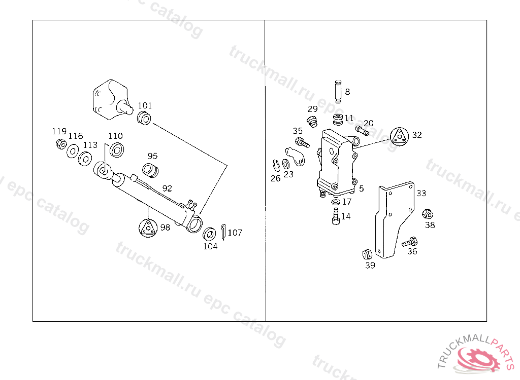 WASHER HYDRAULIC CYLINDER TO CAB