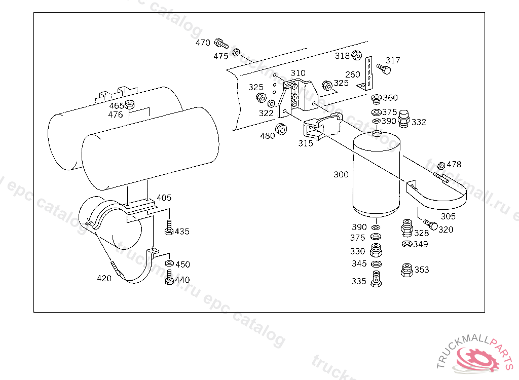 RESERVOIR COMPRESSED AIR 30 L, TO VOSS 232,5 9363665 812731 FOR VEHICLES WITH VOSS 230 CONNECTOR: ADD. MOUNT FITTING "A 004 997 82 72" WITH O-RING "A 000 987 04 46" AND THRUST RING "A 000 997 02 03" TO AIR RESERVOIR