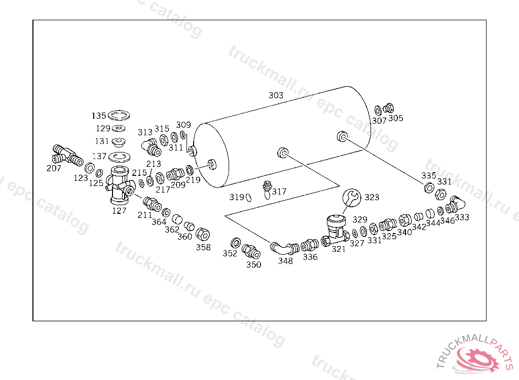 THRUST RING COMPRESSED AIR LINE TO AIR RESERVOIR AND TO T-FITTING
