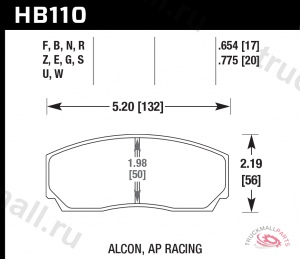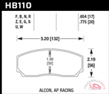 Колодки тормозные HB110B.654 HAWK STREET 5.0 AP Racing Alcon Proma 4 порш HPB тип 2 Rotora 17mm