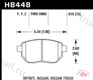 Колодки-тормозные-HB448Y-610-HAWK-LTS-передние-INFINITI-FX35-FX45-до-2006-г-в-